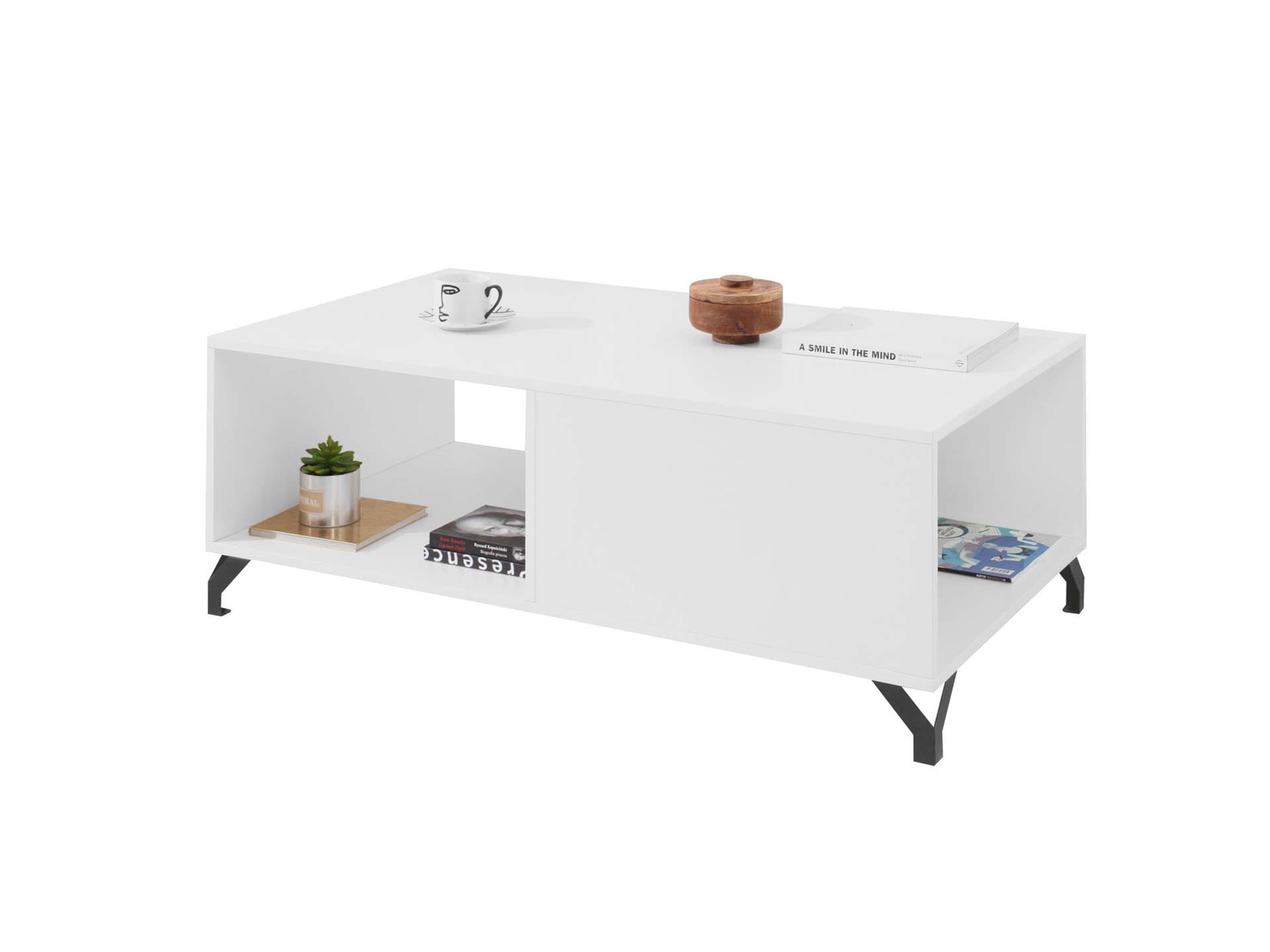 Wyposażony w praktyczną półkę pod blatem, stolik zapewnia dodatkowe miejsce na piloty, czasopisma czy drobne akcesoria. Blat o optymalnym rozmiarze sprawdzi się zarówno podczas codziennego wypoczynku, jak i spotkań z gośćmi przy kawie.