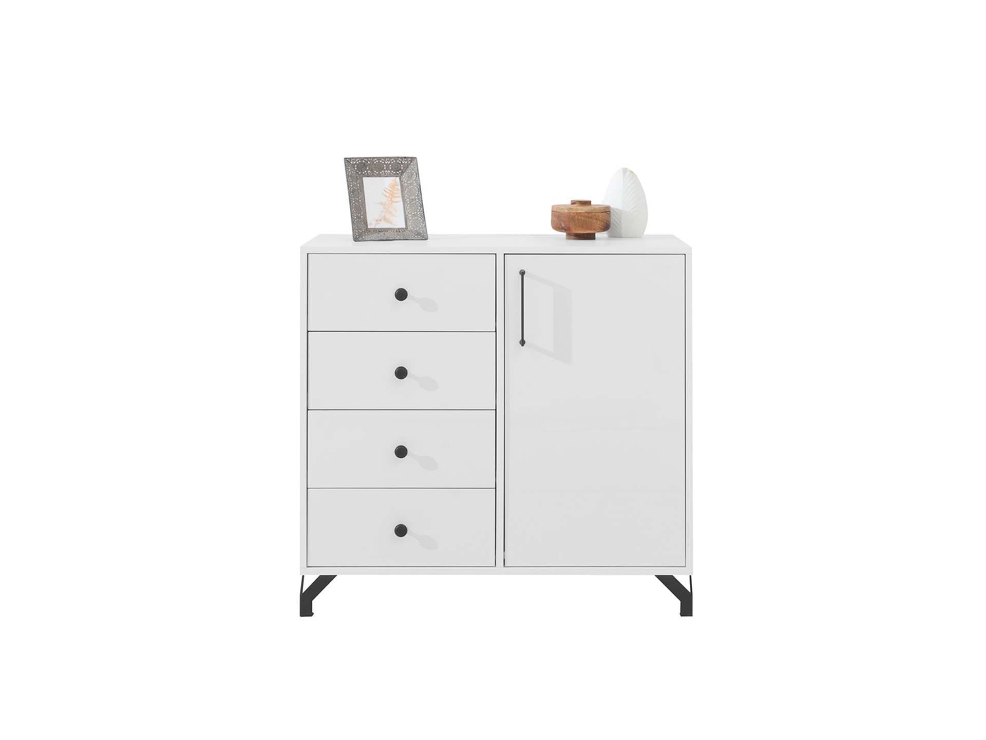 Bergen 7 komoda biały połysk 1D4S z szufladkami biała młodzieżowa do salonu sypialni