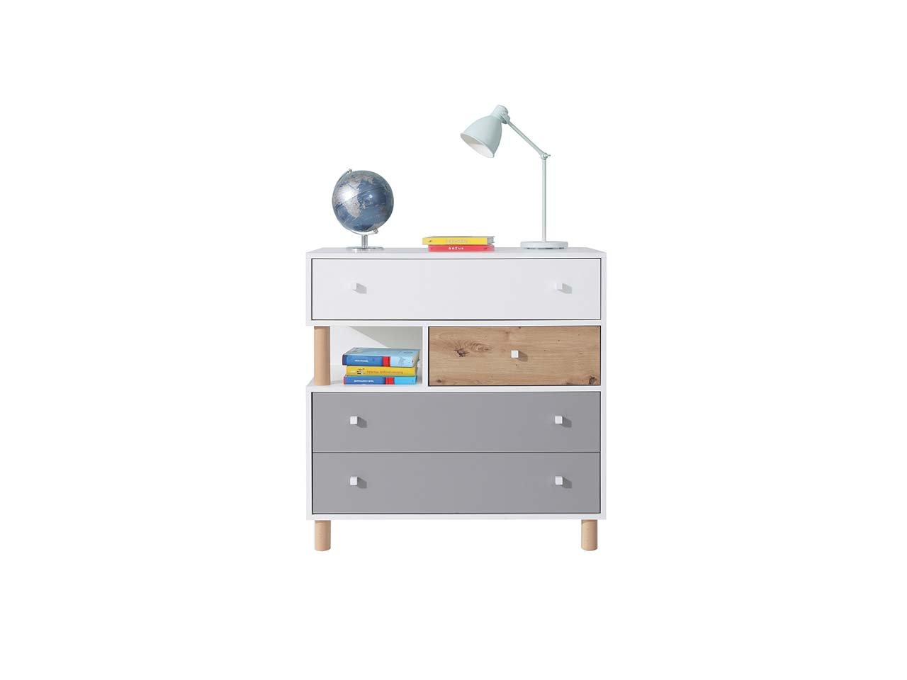 Komoda Faro z 4 szufladami to doskonałe rozwiązanie dla każdego, kto ceni porządek, funkcjonalność i nowoczesny styl w pokoju młodzieżowym.