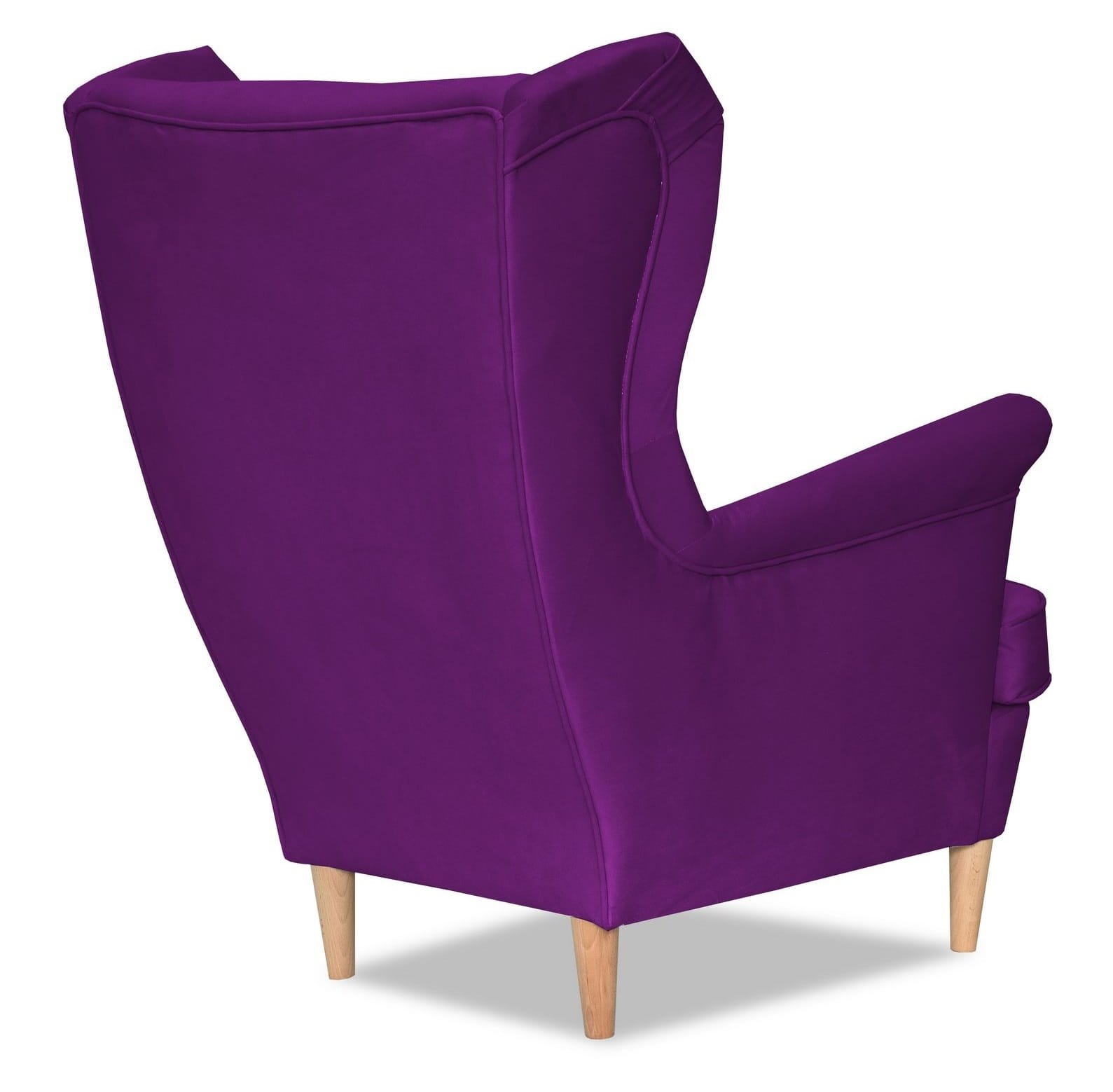 Fotel Uszak AMORE 46 Fioletowy Welur Elegancki Wygodny Stylowy Fotel do Salonu Skandynawski Boho Glamour