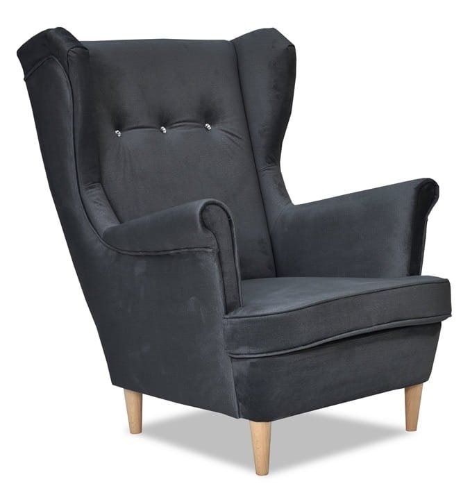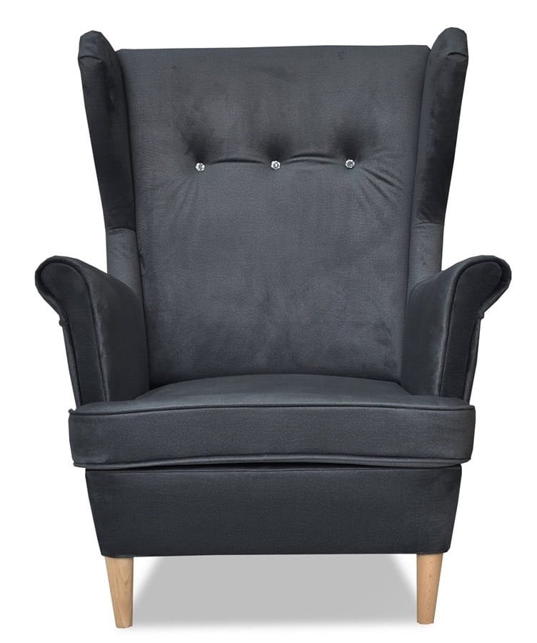 Fotel Uszak Monolith 97 czarny z kryształkowymi guzikami – elegancja, komfort i praktyczność.