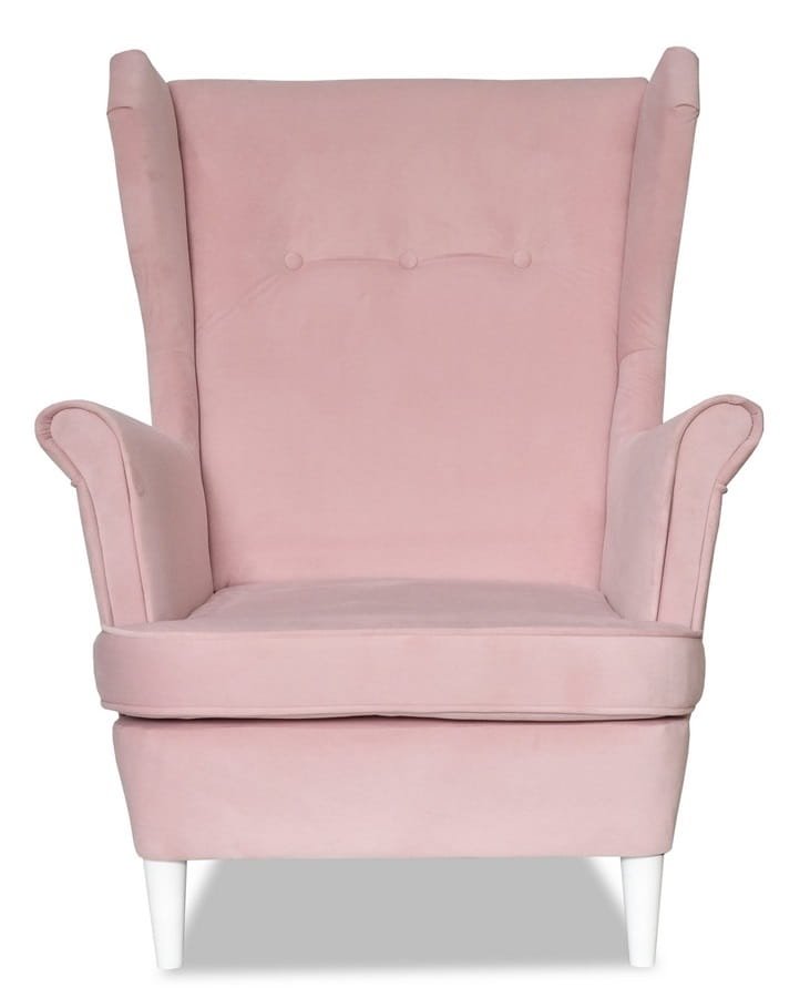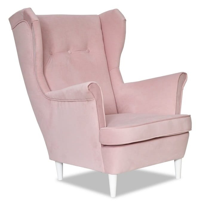 Fotel Uszak TRINITY 19 romantyczny jasny róż velvet welur – komfort, styl, elegancja i praktyczność w jednym meblu.