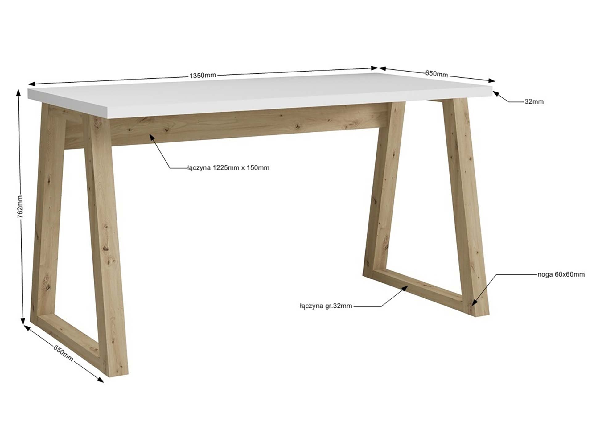 - łączyna nóg - płyta wiórowa laminowana o grubości 32 mm.