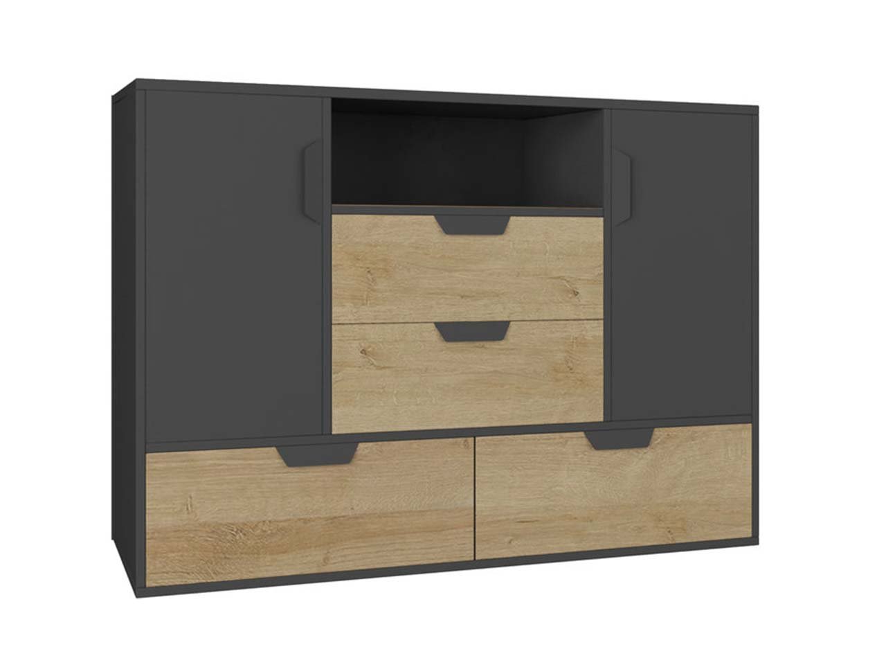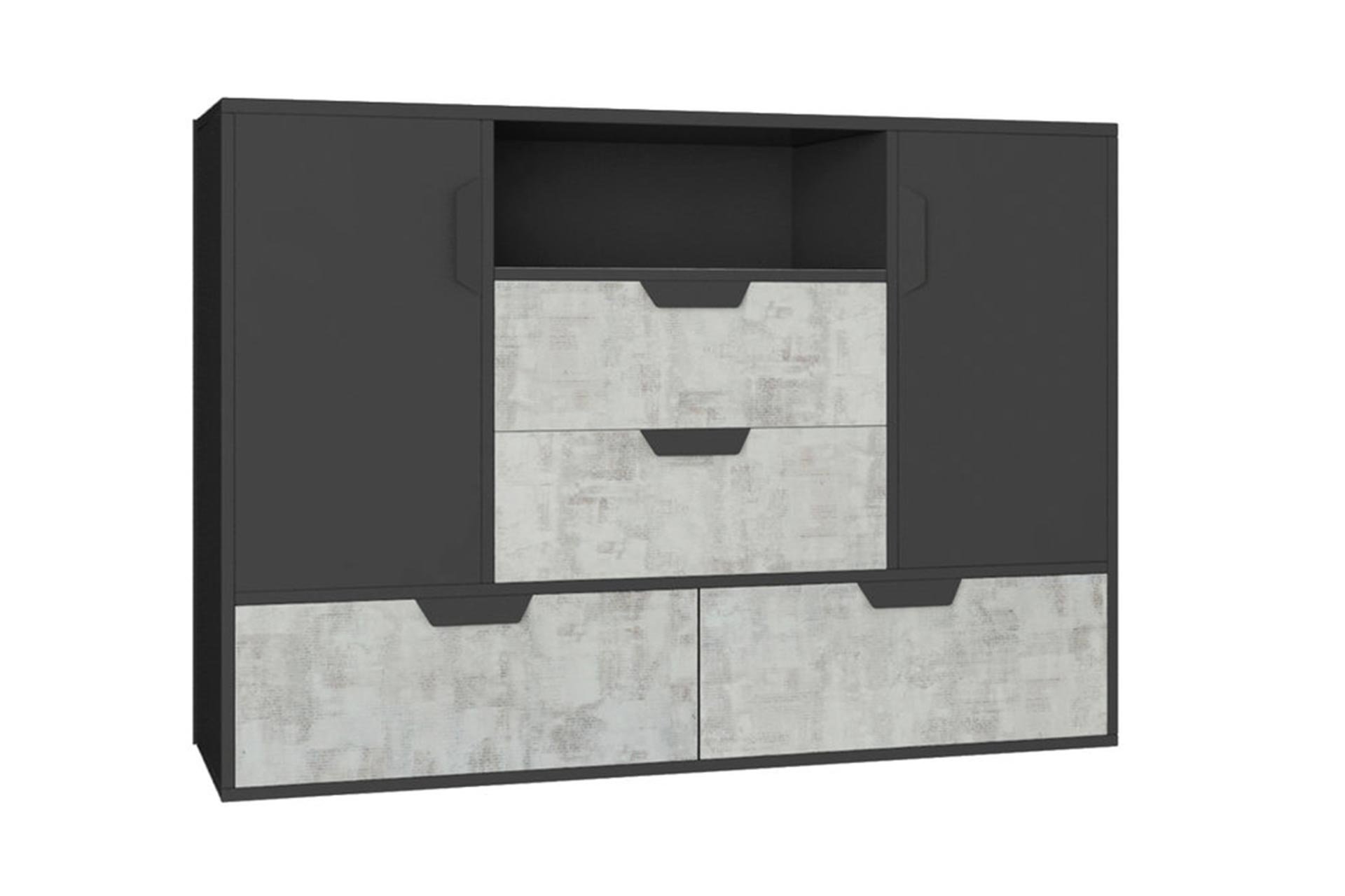 Nano 7 młodzieżowa komoda z szafkami i szufladami 120 cm. Posiada dwie szafki, cztery szuflady oraz półkę otwartą.