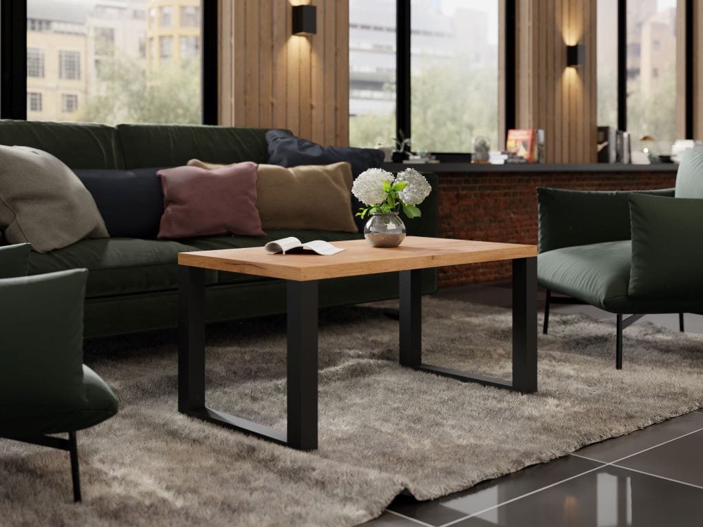 Nowoczesny stolik kawowy prostokątny w stylu loftowym. Blat w pięknym odcieniu drewna. Nogi czarne. Ława idealnie wkomponuje się w każde wnętrze, ożywi je i nada nieprzeciętnego charakteru. Wykonana z najwyższą starannością.