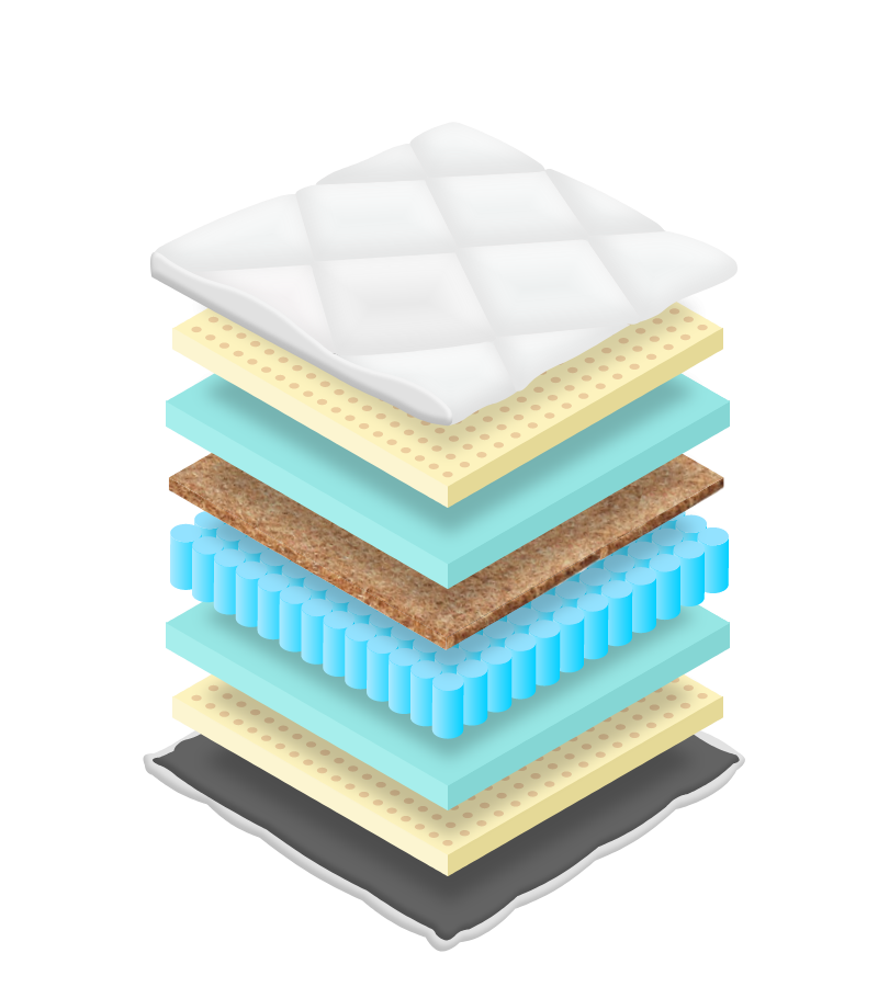 Strona twardsza materaca została wzbogacona o naturalną warstwę kokosa, która zwiększa stabilność i wytrzymałość, a także zapewnia antybakteryjne i antygrzybiczne właściwości oraz doskonałą wentylację. Dzięki temu materac skutecznie odprowadza wilgoć i utrzymuje optymalną temperaturę przez całą noc.