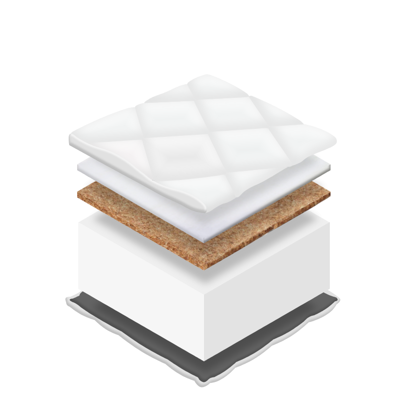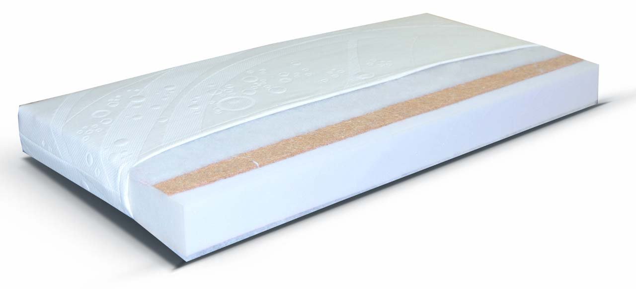 Materac wykonano z elastycznej pianki poliuretanowej T25 oraz naturalnej maty kokosowej. Dzięki temu jest lekki, przewiewny i trwały.