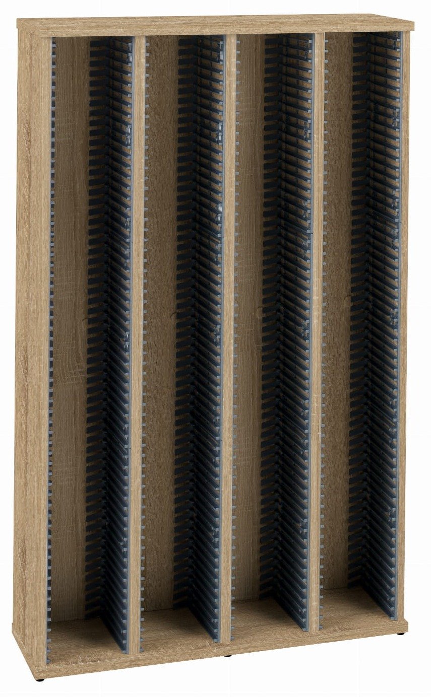Przemyślana konstrukcja, wygodny mechanizm do wyjmowania płyt, ułatwia uporządkowaną organizację 240 płyt CD, pozwalając na szybkie odnajdywanie potrzebnych tytułów. Kompaktowy format sprawia, że stojak bez problemu mieści się przy biurku, półce lub regale, estetycznie prezentując całą kolekcję. Dzięki dbałości o każdy szczegół, regał stanowi nie tylko niezastąpiony sposób na uporządkowanie płyt, ale również jest ciekawym elementem dekoracyjnym wnętrza.