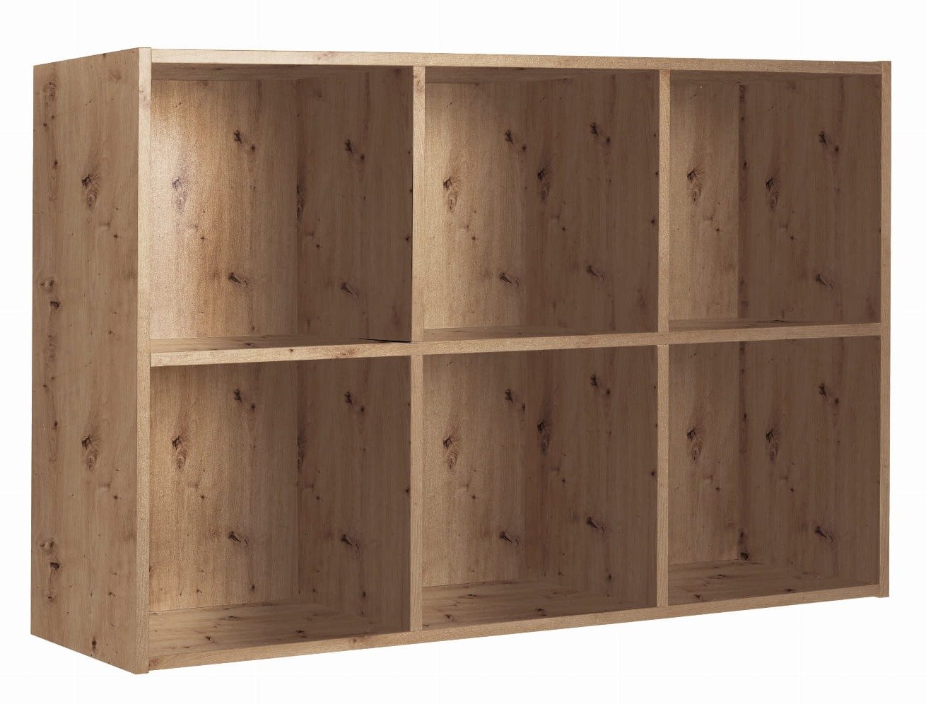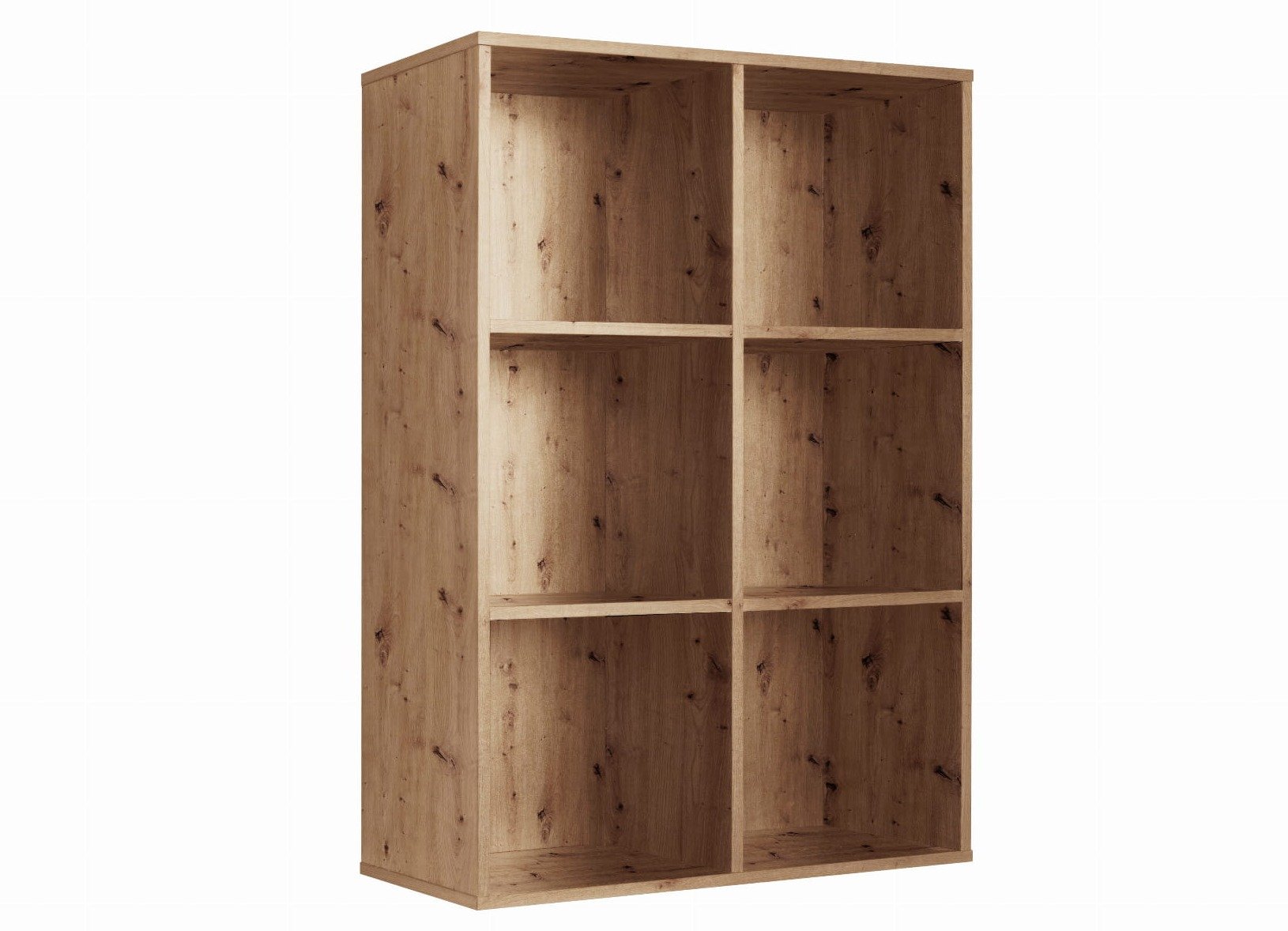 Dzięki możliwości konfiguracji pionowej lub poziomej oraz opcji postawienia lub zawieszenia na ścianie, regał pozwala optymalnie wykorzystać przestrzeń i dopasować mebel do indywidualnych potrzeb użytkownika. Wzmocniony tył wykonany z płyty laminowanej zapewnia większą stabilność i trwałość konstrukcji.