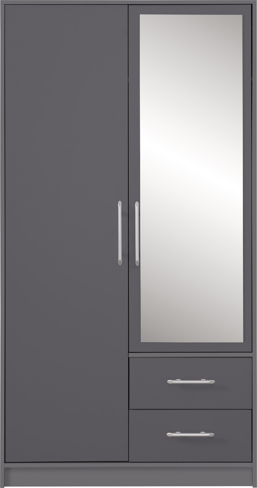 SMART 2 pojemna nowoczesna szafa z lustrem 2 drzwiowa z drążkiem, półką i dwoma szufladami to element szerokiej kolekcji SMART, której zadaniem jest kompleksowe wyposażenie wnętrza w prostym, ponadczasowym stylu.