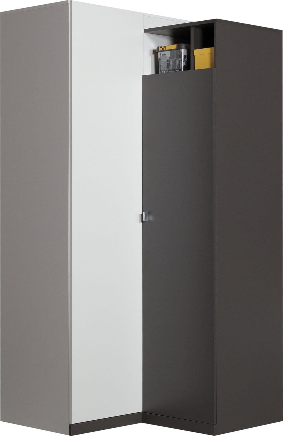 Pojemna szafa narożna z półkami, drążkiem na wieszaki.