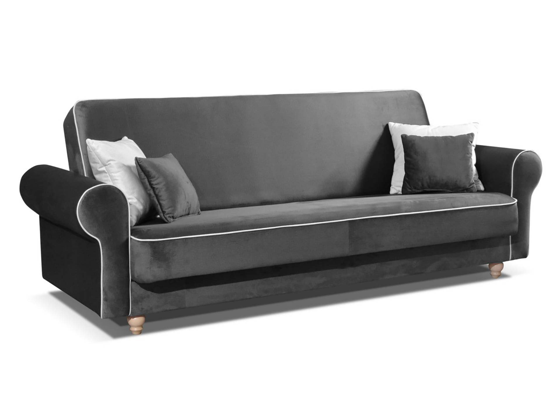 Elegancka i bardzo stylowa rozkładana kanapa z pojemnikiem na pościel. Wykonana z dbałością o detale, zachwyci każdego wielbiciela klasyki i podkreśli charakter wnętrza, wnosząc w nie niepowtarzalny klimat.