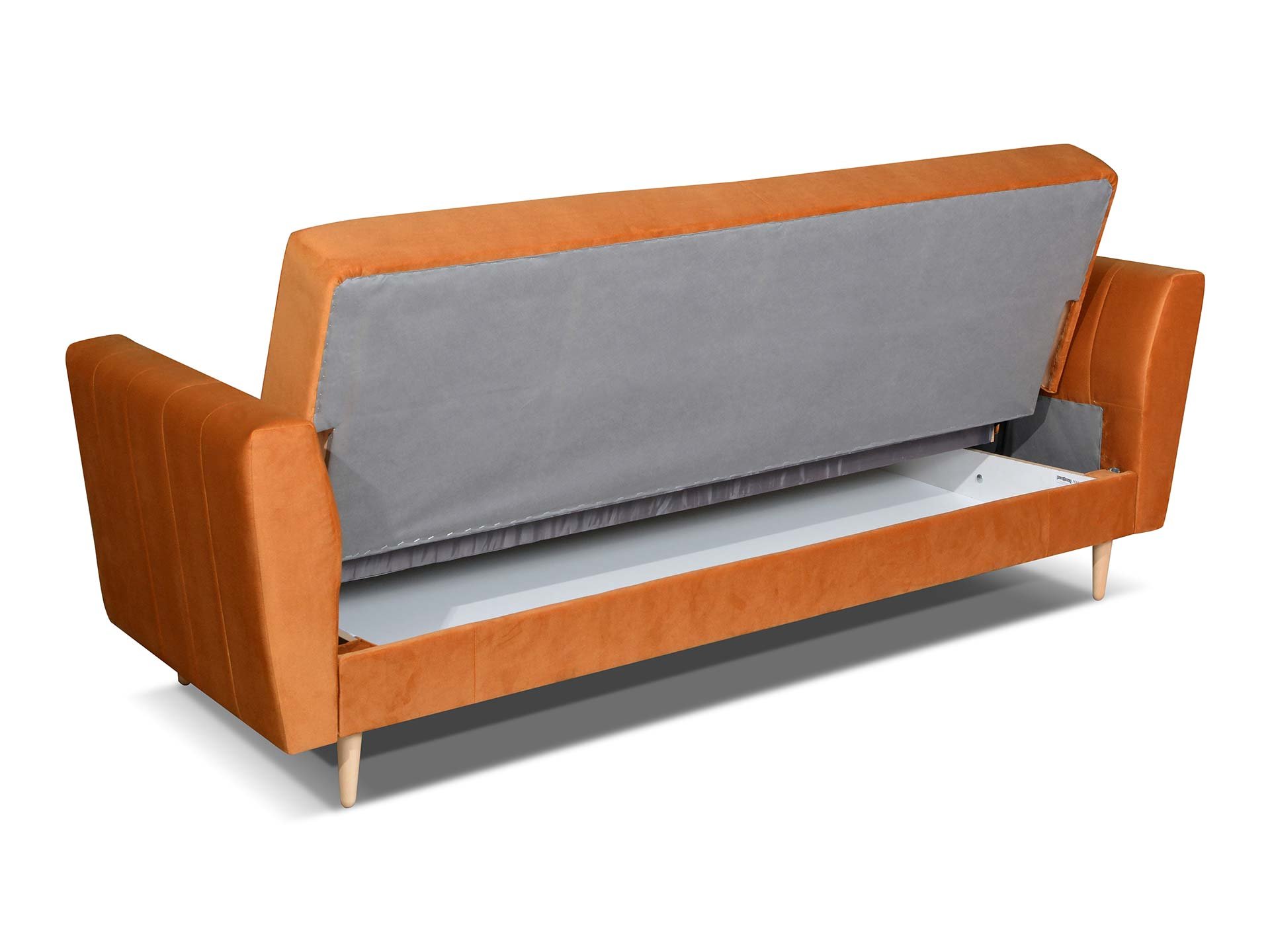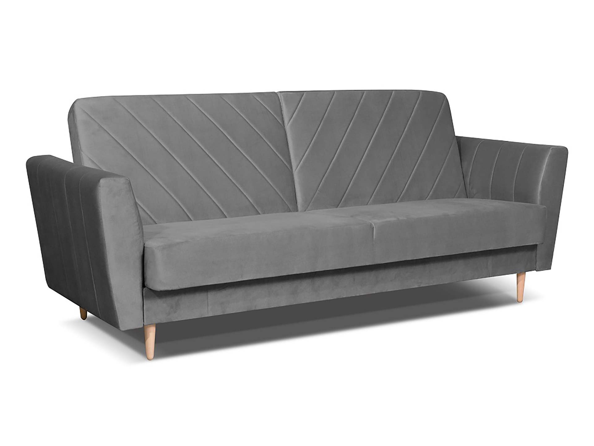 Elegancka, nowoczesna, rozkładana wersalka z pojemnikiem na pościel, dostępna w kolorze FANCY 96. Tapicerka posiada delikatne przeszycia.